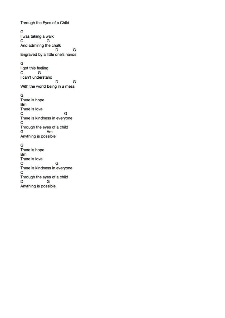 After seeking feedback from my mentor, I realised that I wasn’t using enough of my own voice in the songwriting process. Having to start again from scratch was hard but I knew it was going to be worth it in the long run. It took me a while to discover what I wanted from this process. Was it to educate? Or rather inspire? Fortunately, I discovered the answers to these questions on a walk around my local neighbourhood. Seeing local children’s chalk creations gave me a completely new perspective of COVID.